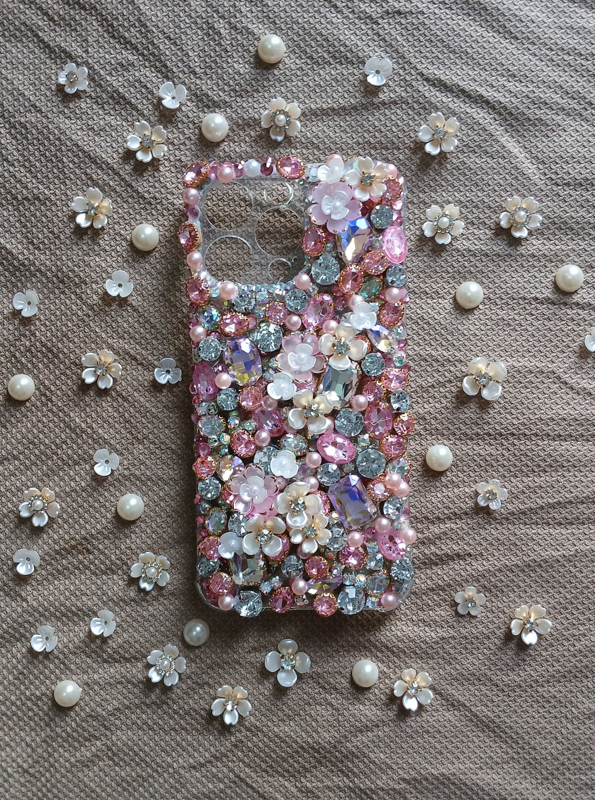 Turn heads with this ultra-glamorous phone case, meticulously hand-decorated with sparkling rhinestones, delicate pearls, and 3D floral embellishments. Designed for those who adore bold, statement accessories, this case is a dazzling blend of elegance and creativity.