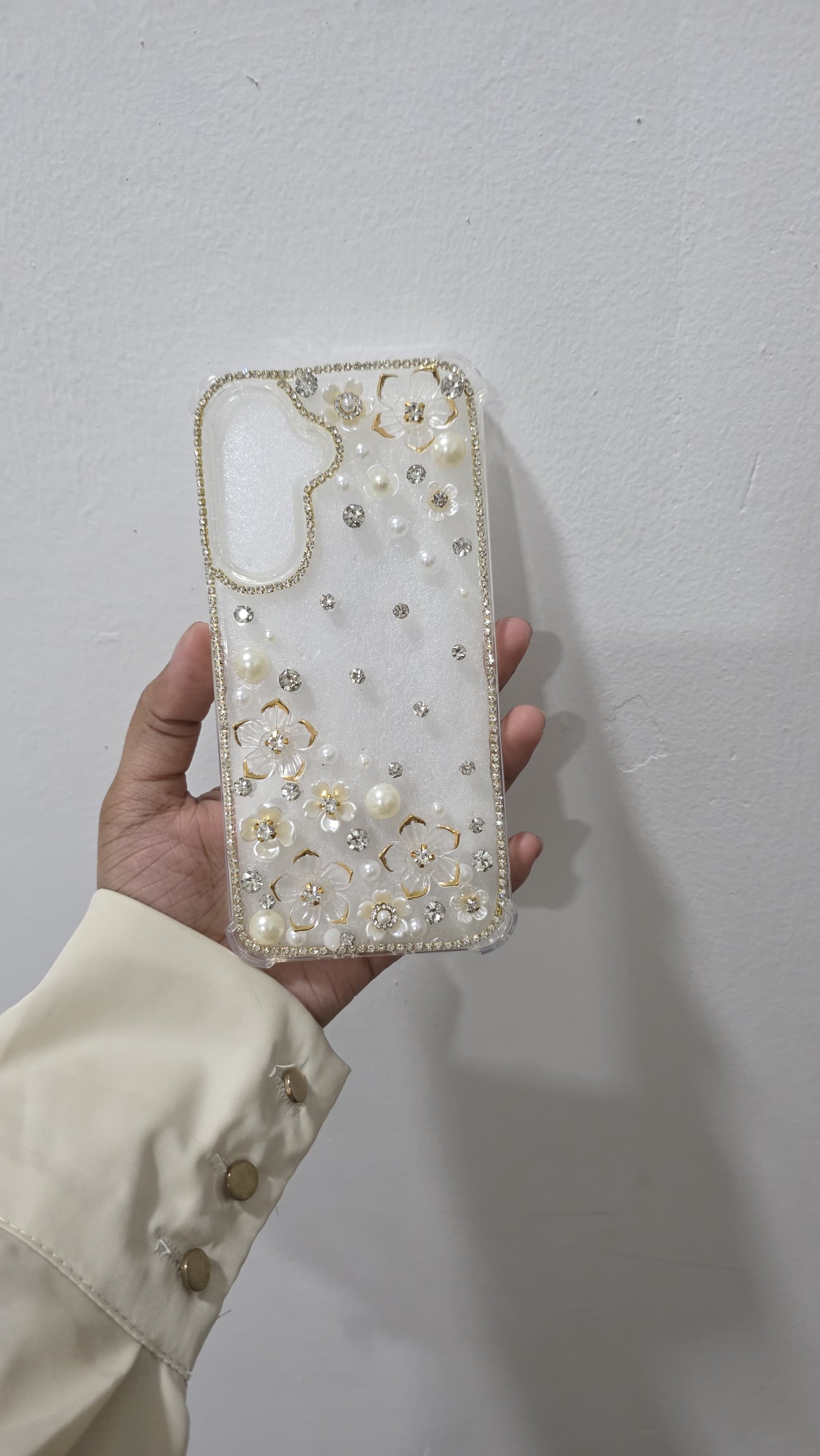Luxury Pearl & Crystal Floral Phone Case – Elegant Handmade Bling Cover