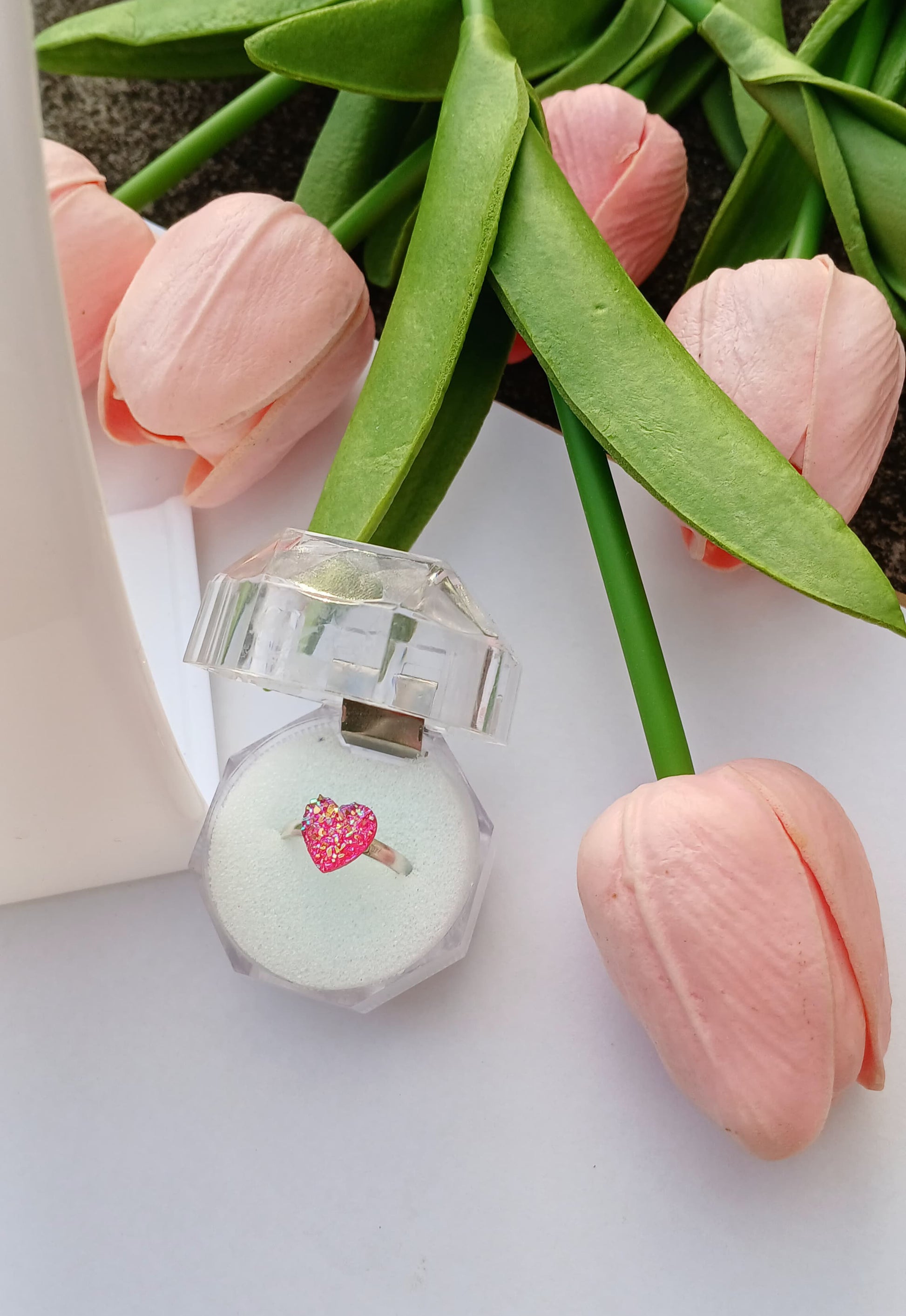 Pink Glitter Heart Adjustable Ring – Sparkle With Love